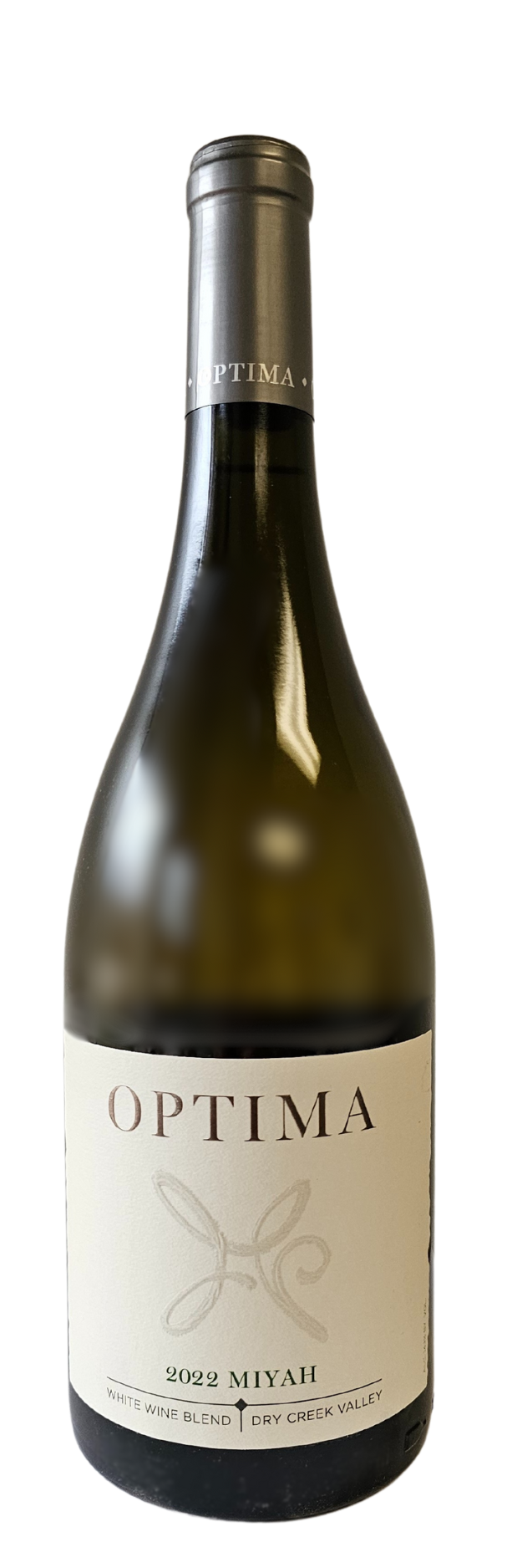 The Optima 2022 Miyah white wine is a blend of 65% Sauvignon Blanc and 35% Picpoul from Sonoma County's Dry Creek Valley AVA. The wine is bone dry with bright citrus flavors and a delicious backbone of minerality. Crisp and refreshing, you'll want to drink on a warm day. Pair with oysters and other fresh seafood.