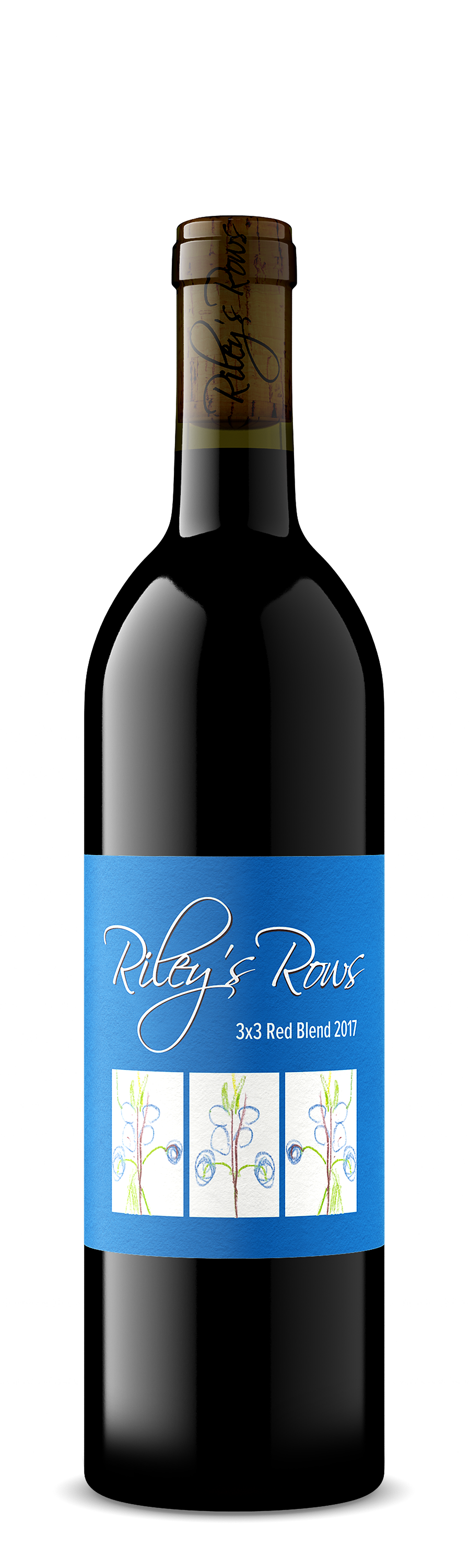 The second release of Riley’s Rows' "Three by Three" Proprietary Red Blend reflects a proficiency in wine-making far beyond Riley's years. A blend of Merlot, Syrah, and Cabernet Sauvignon, it contains soft tannins, red and dark fruit flavors, and a very appropriate dose of acidity. The result is a robust but very approachable wine that possesses delightful complexity, all culminating with a pleasant long finish. It is a treat to drink now, but we also expect it will age quite well for an extended period of time.