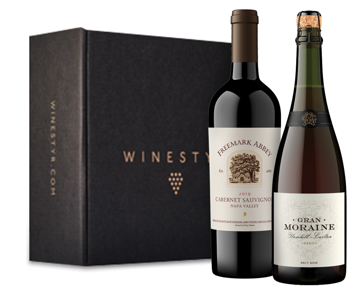 This gift set is shipped in a signature black Winestyr box and includes one bottle of highly acclaimed Napa Valley Cabernet Sauvignon and one bottle of Brut Rosé. The Freemark Abbey 2019 Cabernet Sauvignon is classically styled, receiving 91 points from Jeb Dunnuck, and the Gran Moraine Brut Rosé received 94 points from Wine Spectator. This duo is the perfect way to say “cheers” for any occasion.