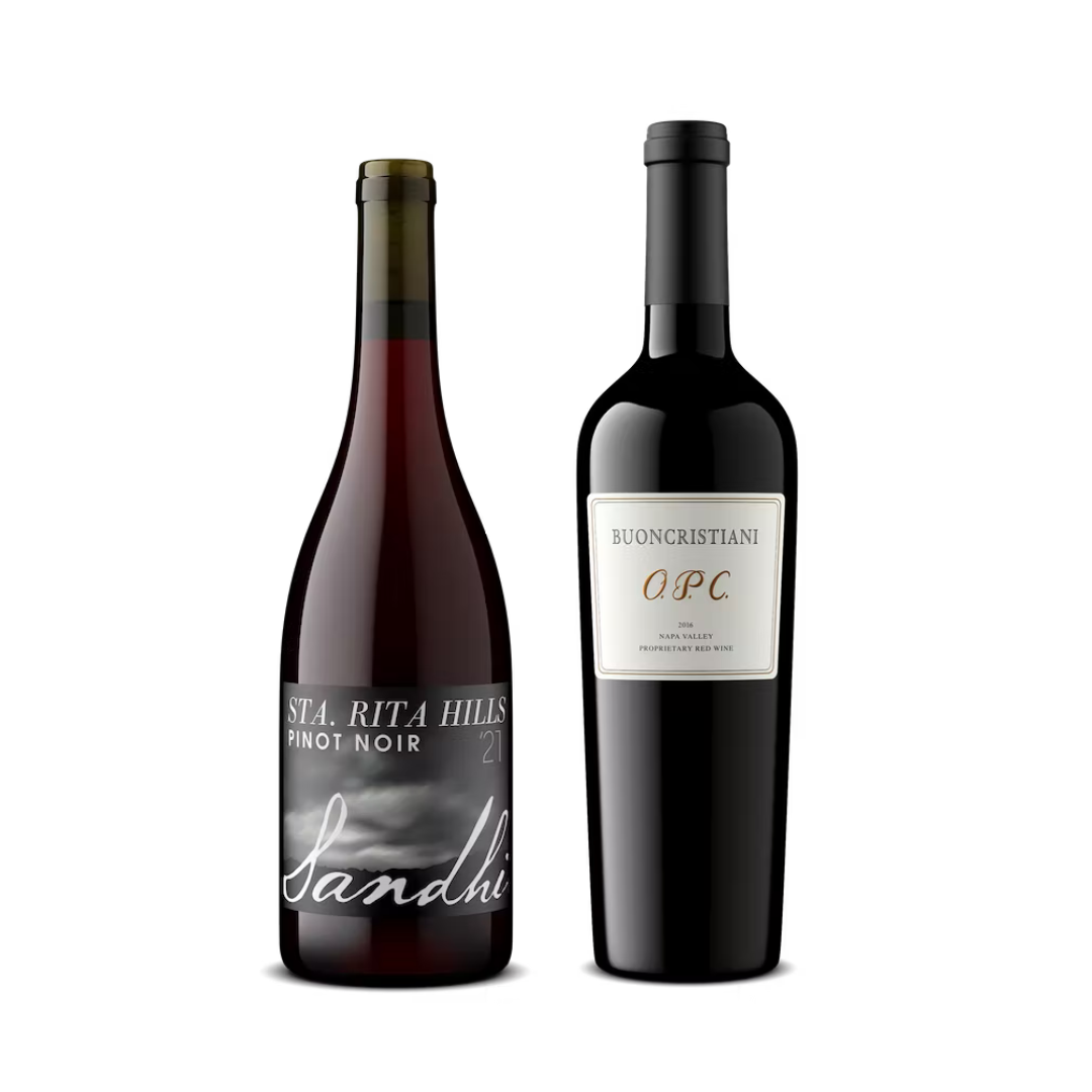 This gift pack combines the power of Napa Valley with the beauty of California's Sonoma Coast. In this Critically Acclaimed Duo comes one bottle of Buoncristiani 2018 O.P.C Proprietary Red which received 93 points from Robert Parker and one bottle of Sandhi 2021 Sta. Rita Hills Pinot Noir which received 93 points from Robert Parker.
