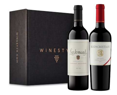 This two bottle gift set is shipped in a signature black Winestyr gift box and contains the two world class Napa Cabs. First, the 2019 Larkmead Napa Valley Cabernet Sauvignon, from one of Napa Valley's oldest estates, is an exceptional wine made by master winemaker, Dan Petroski. This wine received a 95pt score from Wine Enthusiast. Not to be outdone, the second wine in this set is the 2018 Buoncristiani Napa Valley Cabernet Sauvignon that exudes loads of power and finesse earning it a 96pt score from Robert Parker. Both wines have the bones to age for 10+ years in the cellar, but are drinking fabulously in their youth, making this a great gift for any serious fans of Cabernet Sauvignon.
