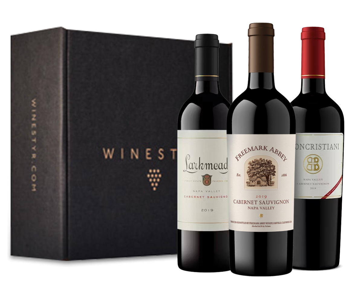 This three bottle gift pack comes shipped in a signature black Winestyr box. Each gift pack comes with one bottle each of the Larkmead 2019 Napa Valley Cabernet Sauvignon (95pts Wine Enthusiast), Sojourn Cellars 2021 Oakville Cabernet Sauvignon (previous vintage 93pts Jeb Dunnuck), and Buoncristiani 2018 Napa Valley Cabernet Sauvignon (96pts Robert Parker). This blockbuster trio of wines makes for an outstanding gift the Cab lover in your life.
